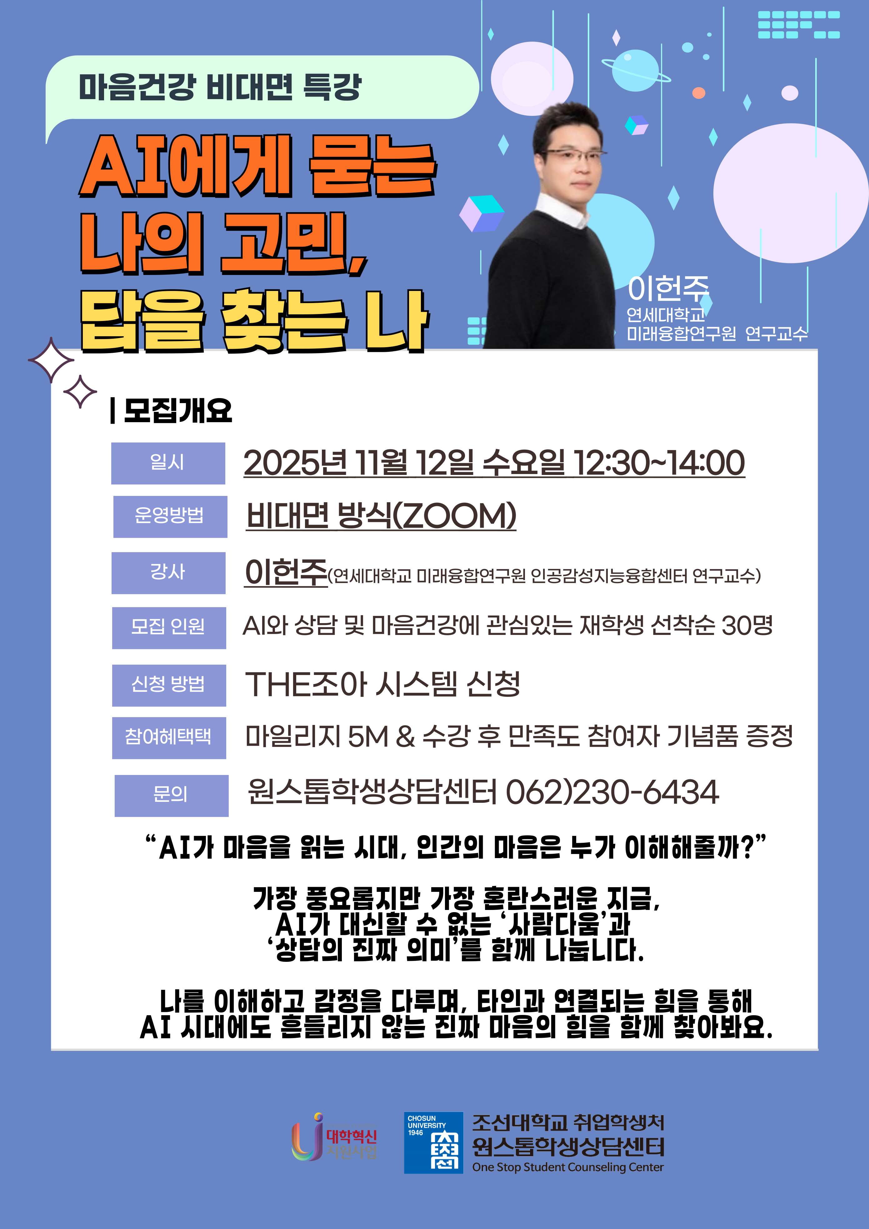 AI가 대신할 수 없는 ‘사람다움’과 ‘상담의 진짜 의미’를 함께 이야기합니다!